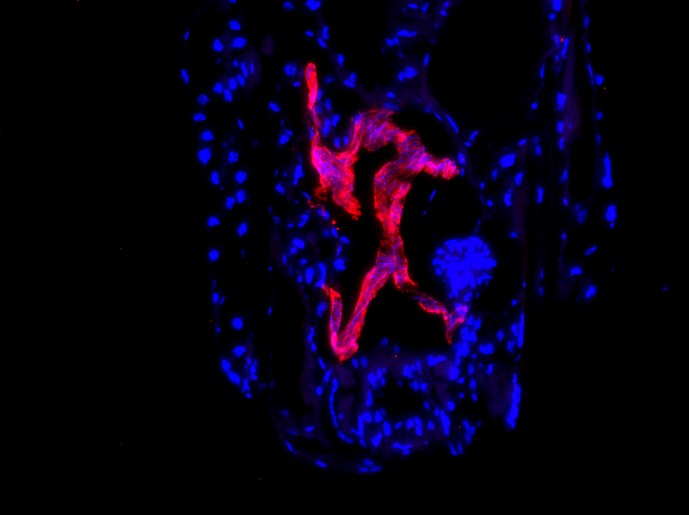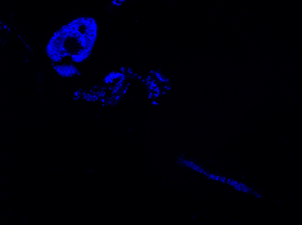 Insects have evolved creative and unique abilities to detect, acquire, metabolize, store, and excrete the essential nutrient nitrogen. Across the entire life cycle of the mosquito, the relevance of ammonia (NH3/NH4+) nitrogen at the different stages and between sexes is remarkable. In fact, adaptations to high external ammonia appear to be a primary physiological hurdle for mosquito inhabitation of urban and peri-urban habitats. Despite the internal and external demands for ammonia transport and regulation across the Aedes aegypti mosquito life cycle being increasingly well documented, the molecular machinery that makes these feats possible is far from established in mosquitoes. Using a variety of approaches, we characterize the specialized ammonium transporter proteins that shuttle NH3/NH4+ across cell membranes, like an Rh protein in the larval hindgut shown in the image to the left. Our current research is primarily focused on adult mosquitoes.
